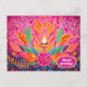 The foliage, a testament to the artist's skill and dedication, showcases a level of detail that invites closer inspection. Every leaf is a canvas of swirling patterns and vibrant pastels, creating a lively backdrop for the diya's radiant glow. The interplay of magenta and amber hues infuses the card with a warm and inviting ambiance, evoking the spirit of togetherness and joy that Diwali represents.