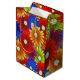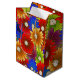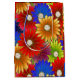 A bold and cheerful gift bag exploding with giant daisies in brilliant reds, oranges, blues, purples, and greens. The floral pattern is outlined with golden stitching for an embroidered look that’s eye-catching and festive. Perfect for birthdays, spring parties, or whenever your gift needs to arrive in style louder than a marching band. Strong handles add practicality to the riot of colour.