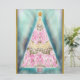 This festive artwork features an abstract Christmas tree created with watercolor-inspired brush strokes, blending soft pinks, golds, and greens into a harmonious pattern. Set against a luminous turquoise background with gold speckles, the tree is crowned with a glowing star and framed with a golden border. The elegant composition evokes a sense of joy and sophistication, perfect for celebrating the holiday season.