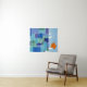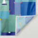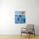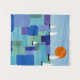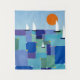 "Radiant Ocean Voyage" is a captivating art print that showcases a serene ocean scene with blocks of blue shades representing the water, an orange sun illuminating the horizon, and boats gently floating.