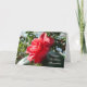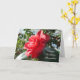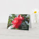 A vibrant birthday card showcasing a red camellia flower flourishing in the sunshine, with the option to personalize the front, inside, and back with a name and your own special message.