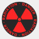 Danger - Radiation - red and black radiation symbol sticker with red warning text.