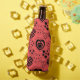 Ce glacière de bouteille a un design de Saint Valentin de coeur répétitif avec différents graphismes à l'intérieur sur un champ de rouge.