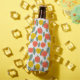 Ce glacière de bouteille a un design scandinave de fleurs et de feuilles éparpillés dans le corail, l'or, et le vert sauge.