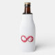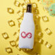 Infinity symbole of continuous stream of red pouring into glass glass glass on white background.
