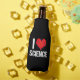 Un glacière de bouteille de professeur de science cool en noir qui présente un motif de science I Love génial avec un coeur rouge enveloppé d'un modèle atomique.