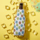 Ce glacière de bouteille a une conception géométrique de points bleus, verts et marron.