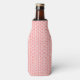 Ce glacière bouteille a un design Art Déco de lignes courbes saumons en forme de triangle sur un champ de blanc répété à travers le design.