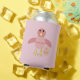 Ce fantastique peut refroidir dispose d'un dessin mignon d'un poussin rose. Le poussin a un ventre rose pâle et des ailes roses foncées et la tête avec un bec et des pieds jaunes. À côté de la poussette se trouve un petit oeuf. Il y a du texte personnalisable pour que vous puissiez personnaliser ce design avec l'âge et le nom du destinataire.