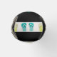 Parfait pour une journée d'été à la plage, ou pour la fête des filles. Style classique naval et côtier avec des rayures horizontales noir et blanc. Un refroidisseur orné de petites icônes de tongs en jaune et aigue-marine ! Avec le texte : La vie est meilleure en tongs !
