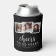 Ce 60ème anniversaire personnalisé peut refroidir comprend un collage de trois photos carrés personnalisées au-dessus de l'expression "Cheers to 60 years" dans élégant script de calligraphie blanche et sans serif police sur un arrière - plan noir. Ajoutez le nom et l'anniversaire de l'invité d'honneur ci-dessous. Une excellente façon de célébrer quelqu'un qui a soixante ans !