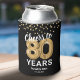 Personnalisé 80e anniversaire peut les refroidisseurs avec un arrière - plan noir élégant qui peut être changé à n'importe quelle couleur, parties scintillant brillante or, quatre-vingts ballons d'hélium or, et un modèle de texte simple qui est facile à personnaliser.