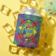 Le logo "Art By MAS" placé sur un koozy coloré.