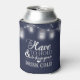 Ce mariage rustique et personnalisé peut refroidir avec l'expression "Avoir et tenir pour garder votre boisson froide" sur un arrière - plan bleu marine bordé de bocaux de mason brillants et de lampes à cordes. Customisez l'autre côté avec vos initiales, noms et date mariage. La couleur Arrière - plan est entièrement personnalisable pour correspondre à vos couleurs mariages.