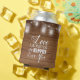 Ce mariage rustique personnalisé peut refroidir avec l'expression "Aimer, rire, et heureux toujours après" sur un arrière - plan en bois de grange en détresse bordé de bocaux de mason brillants et de lampes à cordes. Customisez l'autre côté avec vos initiales, noms et date mariage.