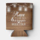 Ce mariage rustique personnalisé peut refroidir avec l'expression "Avoir et tenir pour garder votre bière froide" sur un arrière - plan en bois de grange en détresse bordé de bocaux de mason brillants et de lumières à cordes. Customisez l'autre côté avec vos initiales, noms et date mariage.