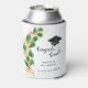 Créez une boîte unique peut refroidir pour une fête de remise de diplômes avec le design qui comporte un dicton de Grad Congrats, et est décoré avec un casquette d'un diplômé et élégant vert émeraude et or eucalyptus vert sur un arrière - plan blanc. Le modèle facilite la saisie du nom et de l'année du diplômé.