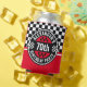 Un thème amusant Car Racing avec un motif de drapeau à damiers et un design masculin pour une fête d'anniversaire d'homme. Ajoutez le nom et l'âge à ce design rouge et noir avec le design de rêve d'un amateur de voiture.