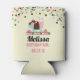 Une fille d'anniversaire personnalisée peut cozie. Le thème de la crème glacée Asweet. Des confettis colorés au sommet. Illustré avec un bar à crème glacée au chocolat, un sundae à 3 boules avec une cerise sur le dessus, et un flotteur à fraise avec des poupées à la crème fouettée sur le dessus. Petites fraises et cerises sur le fond. Couleur arrière - plan jaune.