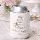 This can cooler features a cream background with a blush floral cake sketch in a minimalist, elegant style. The cream and blush palette pairs beautifully with handwritten script names and date for a personalized wedding favor. Customize using the editable text template with the bride and groom’s name and celebration date. A simple yet playful detail for welcome bags, rehearsal dinners, or reception bar setups.