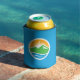 Can Cooler avec un design avec le drapeau de Provo, Utah. Un drapeau bleu avec le logo de Provo City au centre. Le logo représente le lac de l'Utah et les sommets de montagne avoisinants avec le soleil levant en arrière - plan