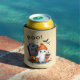 Ce fun peut refroidir a un mignon fantôme portant un casquette tricot orange. Il se tient à côté d'une pierre de tête qui dit RIP, et d'un jack o'lantern. Les chauves-souris volent parmi les étoiles. Il porte aussi une boisson orange avec une batte dessus. Arrière - plan est un motif à pois orange pâle et blanc. Il dit BOO! en haut Ces glacières sont parfaits pour vos rencontres d'Halloween!