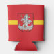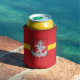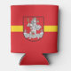 Can Cooler with design with flag of Vilnius, capital city of Lithuania; red flag with yellow stripe and coats of arms with two golden lions holding a shield in the center