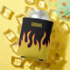 Gardez vos boissons cool avec cette pochette de boîte chaude. Il présente des illustrations de flammes classiques en jaune et rouge contre un arrière - plan noir pour un look dur et masculin. Votre nom ou autre message est en lettres jaunes dorées.