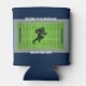 Defend your beverage from warm penalties! This witty Football Can Cooler is the perfect accessory for keeping your drinks cold during any tailgating event, watch party, or Game Day celebration. The can cooler features a dynamic, eye-catching design centered on a green football field graphic with yard lines and "TOUCHDOWN" endzones. The color scheme utilizes a bold navy blue border and gray accents, making it suitable for representing many teams. The hilarious slogans "DEFEND YOUR BEVERAGE" and "NO OFFSIDE SIPS" are prominently featured, adding a fun, humorous touch to your drinkware. A dynamic running player silhouette holding a football is centered on the field, bringing the action to your hand. The text on this can cooler is fully editable, allowing you to easily swap the slogans for a team chant, a family name, or your own funny one-liner! It's a fantastic drinking accessory for the dedicated sports enthusiast. Keep your drink frosty and your spirit high!