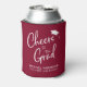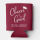 Une bourgogne amusante peut refroidir pour célébrer le diplômé. "Cheers to the Grad" est écrit dans un script blanc moderne avec un grand casquette en haut et vous pouvez personnaliser son nom, son année de classe et son école en typographie blanche. Customisez les couleurs à vos couleurs scolaires en cliquant sur "customiser plus loin".