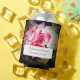 Design avant présente la magnifique photo de gros plan d'un rose en pleine floraison en tant qu'arrière - plan. Les noms de la mariée et du marié ainsi que la date du mariage sont affichés vers le bas dans une police couleur argent contre un dos rectangulaire blanc. Reverse la même image sans texte. Conçu pour coordonner avec la "Love is in Bloom Mariage Suite".