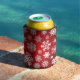 Une boîte refroidit avec un arrière - plan rouge et des flocons de neige et des étoiles blanches. Les flocons de neige sont de tailles et de formes différentes, et ils sont éparpillés partout dans la canette plus frais. Les étoiles sont aussi blanches, et elles sont plus petites que les flocons de neige. Le refroidisseur de boîte est fait d'un matériau souple et souple.
