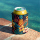 Floraison hawaïenne vive tropicale fleurie et ananas motif Can Coolers en rose, jaune, orange, vert couleurs.