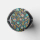 Ce design d'art folklorique présente un motif floral rose, orange et turquoise sur un arrière - plan bleu foncé.