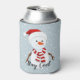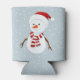 Snowman Design Can Cooler avec du texte personnalisable. Quoi de mieux pour garder votre boisson cool qu'un bonhomme de neige gelé sur un arrière - plan bleu neigeux..