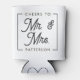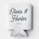 Bienvenue à votre mariage dans le style moderne avec ces bières modernes noir et blanc peuvent refroidir. Le design moderne comprend un simple cadre noir et un texte de script avec l'avant disant "applaudissements à M. et Mme. {nom}" et l'arrière disant noms et date. Vos invités verront une touche spéciale supplémentaire lorsqu'ils regardent le fond et voient le coeur avec des initiales.
