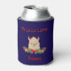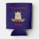 Funny personalized Christmas beer holder can cooler featuring a wooly llama.