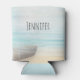 Personnalisé peut refroidisseurs avec une belle image rustique. Couleurs subtiles de bleu clair, marron sablonneux et blanc doux. Une scène de plage avec un bateau sur le rivage avec un filet de pêche accroché à côté. Un élégant look défraîchi.
