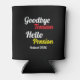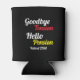 "Goodbye Tension, Hello Pension, Retraité Year" Can Cooler avec Colorful Red and Yellow Vintage Script Typographie. Design moderne noir et blanc. Parti de la retraite.