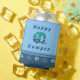 Happy Camper peut refroidir avec des RV rétro en bleu et turquoise. Parfait pour votre camping, votre maison, votre piscine ou la plage.