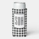 Classic, modern-vintage black and white buffalo check pattern covers this modern Slim Seltzer can cooler with stylish skinny initials. Easily change initials using the Template provided. Font style, color and size can also be edited. Fits 12oz slim cans. Easy to clean durable fabric will last for years and keep your drink cold. Collapsible foam material makes for easy storage. See "About" for more information.