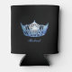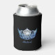 Peut refroidir montré dans une couleur solide de noir avec une photo de couronne bleue glamour sur l'avant et le dos. Nom personnalisé sur le devant. Customisez cet objet ou achetez tel quel. Suggestion : ajoutez le nom du concours et la date en bas de la boîte de refroidissement si vous préférez.