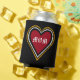 Personnalisez le tatouage Maman peut refroidir avec le coeur de dentelle avec l'or et le mot MOM dans le centre le tout dans le style de tatouage classique. Vous pouvez changer le texte en n'importe quelle Mère ou un nom sur la tasse. Un grand peut plus cool à donner comme cadeau de jour de mère pour la maman votre vie.