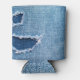 Rafraîchisseur Pour Canette Tissu en denim déchiré, teintes bleues.