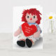 Vintage rage doll with red yarn heart for anniversary for spouse.