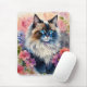 Mousepad features delicate watercolor artwork of a beautiful rag doll cat surrounded by flowers in a feminine aesthetic animal portrait.