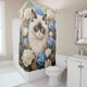 Elevate your bathroom with the Ragdoll Cat With Blue Hydrangea Flowers Shower Curtain, where every shower becomes a moment of feline charm and floral beauty.
