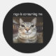 Rage Is Consuming Me Silly Staring Cat Meme Classic Round Sticker