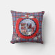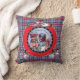 Red, white, and blue Raggedy Treasures pillow with several boy and girl ragdolls and a plaid background.