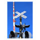 This photo print featuring railroad crossing looking upward with blue skies is perfect for anyone who is a railfan and/or works for a railroad seeking railroad photography that is unique. This item is also great for year round gift giving.
